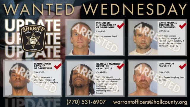 Five individuals featured on Hall County Wanted Wednesday postings, one dating back to 2023, have been accounted for in recent days in a variety of ways.