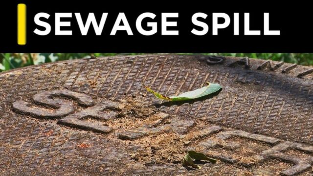 It was located and stopped Tuesday night after an alarm sounded at a sewer pumping station. The spill was near the 500 block of Bayberry Crossing.