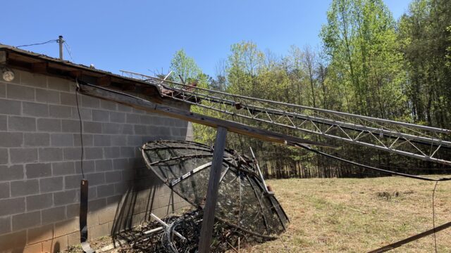 “The company that cuts the grass at our tower site had an accident this morning at the site,” Mike Wofford, President, Vision Communications of Georgia, Inc., and General Manager, WGTJ Radio said Wednesday afternoon. “They accidently cut a guy wire, and our tower came down. It is on top of our tower building. Approximately the top third of the tower was broken.”