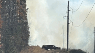 A wildfire is burning on Peeples Lake Road in northwest Georgia on the Chattahoochee National…