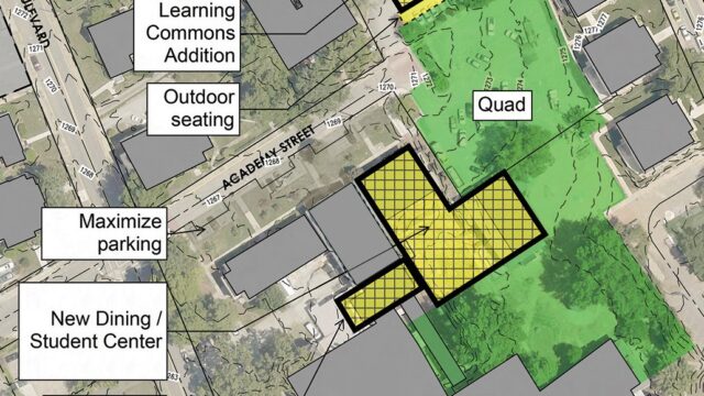 “Our students are central to our university’s mission. This new student center, with its enhanced dining, services, green spaces, and library expansion, will become the vibrant heart of our historic campus,” Whitney McDowell-Robinson, Ph.D., vice president of student development and engagement, says. “This new concept will be dedicated to their development and well-being and will foster community, collaboration, and flexibility, enriching the student experience.”