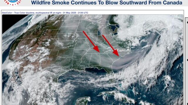 “Wildfire smoke from Canada remains suspended high in the atmosphere, so the sky will have a hazy/milky appearance again today,” a National Weather Service (NWS) advisory noted early Sunday. “No impacts to air quality are expected as the smoke will remain well above the ground.”