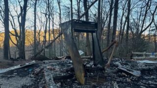 Fire has destroyed he restrooms at the Len Foote Hike Inn trailhead parking lot in…