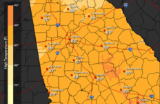 At 4:30 this afternoon, the temperature in Forsyth County was 95 with a heat index of 100 and the temperature is expected to reach into the 90s again tomorrow.