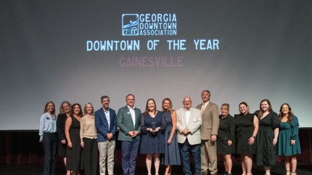 The Downtown of the Year award is presented to a community that not only sets a high bar for excellence, but also serves as an inspiring model for others across the state of Georgia. Gainesville was selected for its outstanding achievements in strengthening its downtown through collaborative partnerships, sustained investment, and a strong focus on placemaking and community engagement.