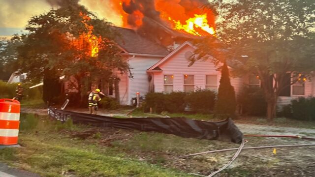 As crew members completed a survey of the scene, they observed a man in the woods behind the house who said that the house was vacant. During operations, firefighters encountered the unidentified man in the woods again, but this time he was holding a shotgun.