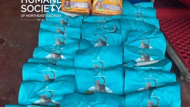 “The bond between a senior and their pet is a special one, and it’s a bond we are dedicated to protecting,” reads a HSNEGA Facebook posting. “Over the past two weeks, we’ve provided 465.8 pounds of cat food to the Gainesville-Hall County Meals on Wheels.”