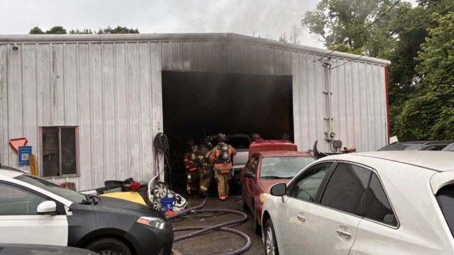 “Fire crews arrived and found heavy smoke emitting from a repair shop in an approximately 2,600-square-foot metal structure.