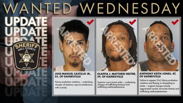 ย Three individuals featured on ๐ช๐ฎ๐ป๐๐ฒ๐ฑ ๐ช๐ฒ๐ฑ๐ป๐ฒ๐๐ฑ๐ฎ๐ by the Hall County Sheriff’s Office (HCSO) were recently accounted for with their arrests, including a 25-year-old man wanted for statutory rape and one who had been on the run for more than nine months.