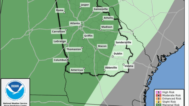 Several rounds of showers and thunderstorms are expected for the Gainesville area and most of Georgia on Tuesday but the outlook for Thanksgiving is clear and cool.