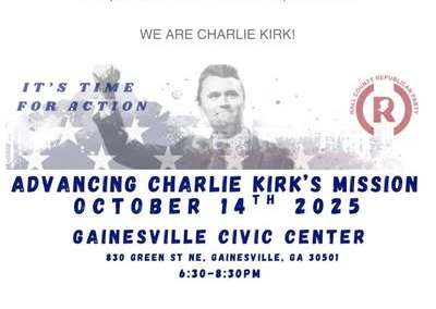 The Hall County Republican Party is hosting an event for Charlie Kirk’s Turning Point USA (TPUSA) and Turning Port Action Tuesday 6:30-8:30 at the Civic Center.