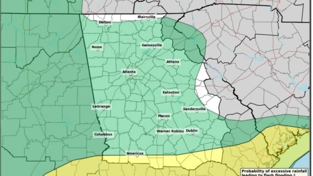 “Cool, cloudy, and wet weather sticks around today across north & central GA. There is the potential for localized flooding in any areas that are hit with multiple rounds of heavy rain, especially this afternoon/evening.