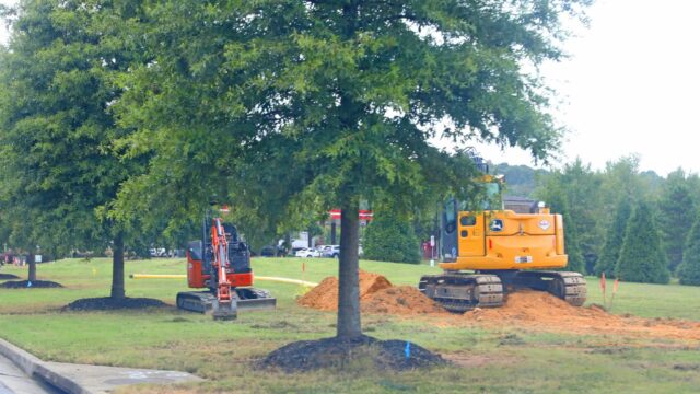 “You will start to see construction activity more and more as the two-year project progresses,” says an announcement on Facebook aimed at students and employees. “Please be sure to travel appropriately as you ingress and egress through campus.”
